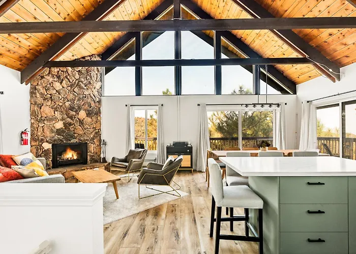 ヴィラはサンバーナーディーノ国際空港から45㎞圏内で、Mountain History Museumなどの文化的名所から車で5分です。 浴室2室の別荘はLollipop Parkなどの自然の名所から2.8km離れた所の場所にあります。 宿泊施設から自動車で10分離れたレイク アローヘッド ビレッジも訪れることができます。